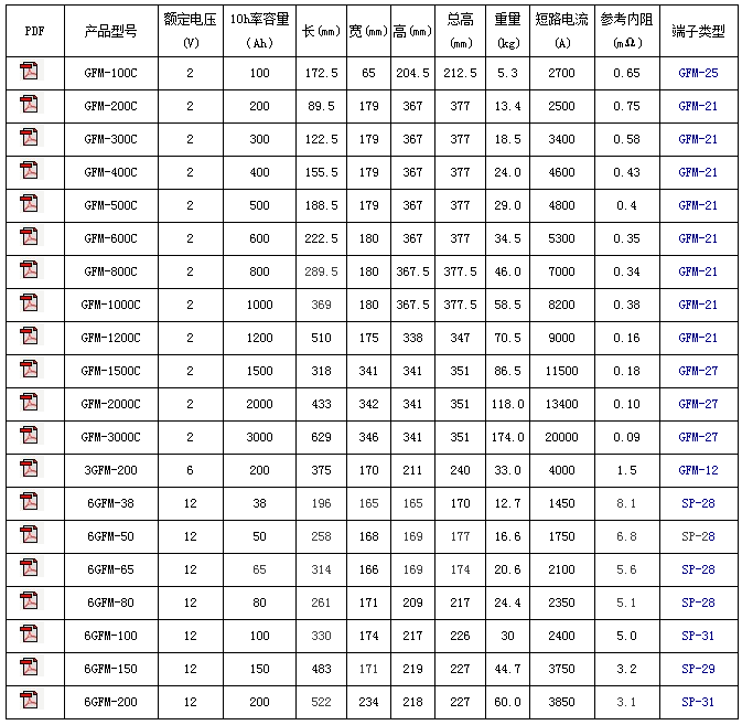 1. 容量范围(C10):80Ah—3000Ah(25℃);